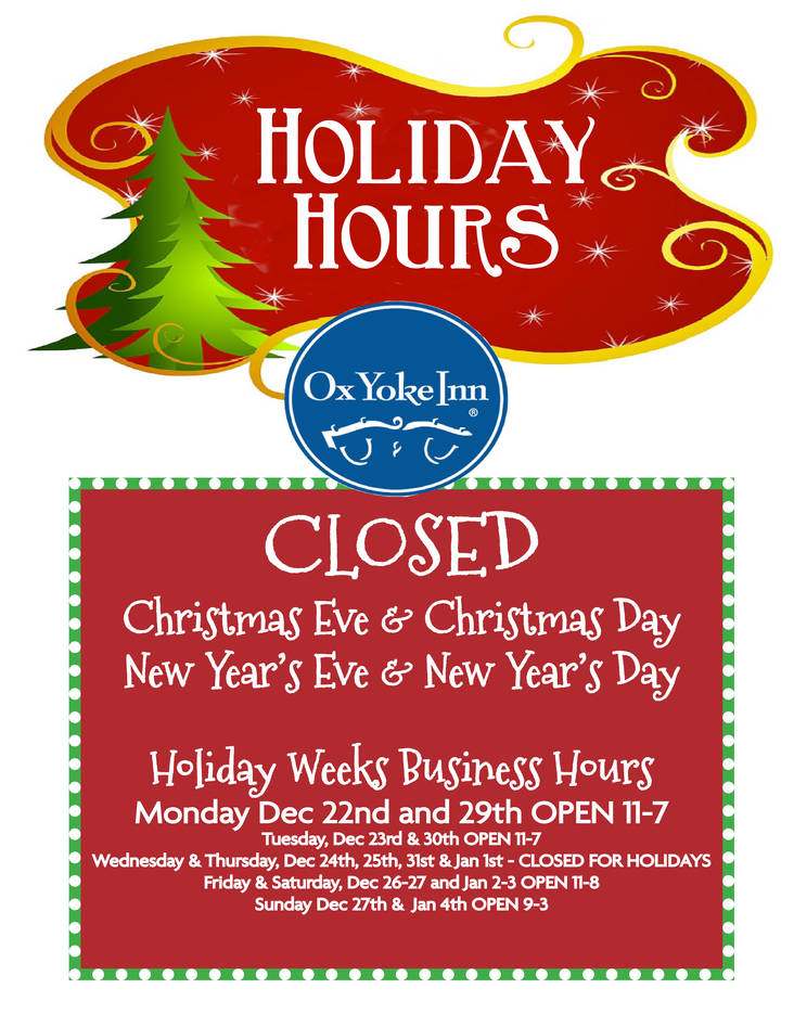 EXCEPT December 22nd and 29th - because we are closed Wednesday and Thursday for the holidays, we will be open those Mondays..